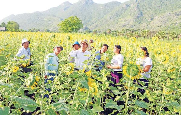 之后,联邦部长一行人前往新阶(Singaing)县区Ywanho村,视察那里的连成一片的35英亩生产向日葵种籽的模范田,与当地农夫们进行了亲切的会谈。新阶县区内今年已栽种了400英亩向日葵种籽生产田。而曼德勒全省也规划种植2,400英亩种田生产这向日葵种籽。