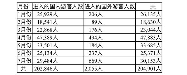 这7个月内每月进入掸邦南部地区的游客人数如下表: