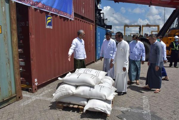 9月2日上午10时,在仰光市亚洲世界港口码头(Asia World Port Terminal)举行了缅甸向斯里兰卡捐赠千吨大米仪式。