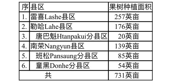 那加民族自治区内的各县区、分县区所种植的果树面积如下: