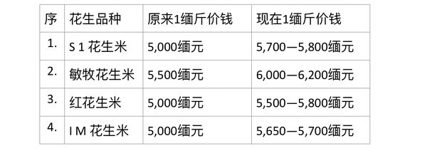 国内民众方面,现在也减少购买棕榈油,转而购买花生油的民众日益增多了。在过去的一年花生米价钱1缅斤(约为1.6公斤)价钱还只是2,500至3,000缅元而已,现在价钱却几乎是翻了一番呢。