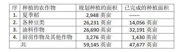 “冬作物规划种植59,145英亩,到目前已完成47,677英亩的种植工作。种植时所需要的农业用水来自溪水及地下水,为完成所规划的种植工作正在努力之中。为了扩大复种、间种等种植工作,也正在与农民们进行协商沟通之中。”县农业局负责人这样说明道。