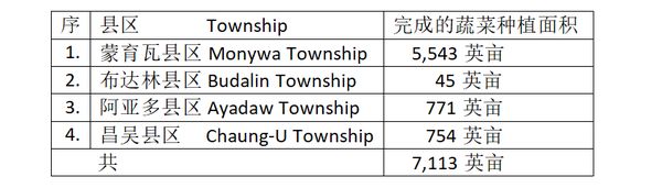 2022—23财政年度冬作物种植季节中,实皆省蒙育瓦(Monywa)专区内的4个县区已完成了各种蔬菜7,113英亩的种植工作。