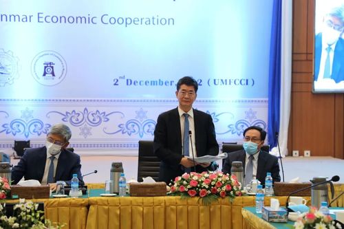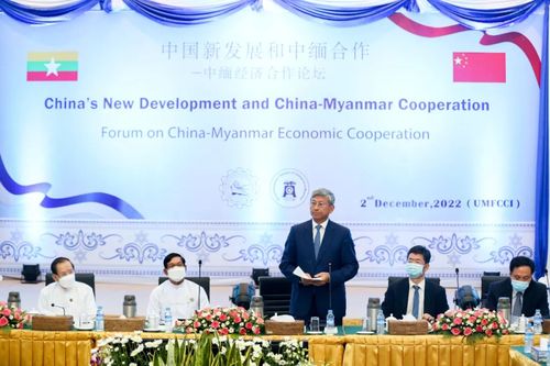 2022年12月2日,由缅甸工商联主办的“中国新发展和中缅合作”论坛在仰光举行。中国驻缅甸大使陈海、仰光省首席部长梭登、缅甸工商联主席佐民温、中国驻缅甸使馆经商参赞谭书富、缅甸中国企业商会会长刘颖以及中缅工商界人士近百人出席。