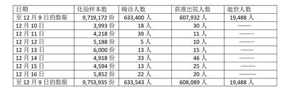 缅甸卫生部 (2022年12月16日)晚8时最后发布的公告中说,12月16日全国确诊人数22人,与12月15日相比增加9人;当天无人因疫情而死亡,与12月15日相持平。