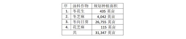 本漂县今年冬作物种植季节期间规划种植的4种油料作物的种植面积如下: