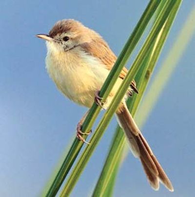 (九)长尾鹪鹩(Brown Prinia,Burmese Prinia):在缅甸中部地区栖息生活的褐色长尾鹪鹩,经过世界鸟类学家的细致研究,认为是仅见于缅甸境内的一独立品种鹪鹩鸟类, 故于2019年6月17日将其命名为Bumrese Prinia,属缅甸本土品种鸟类。