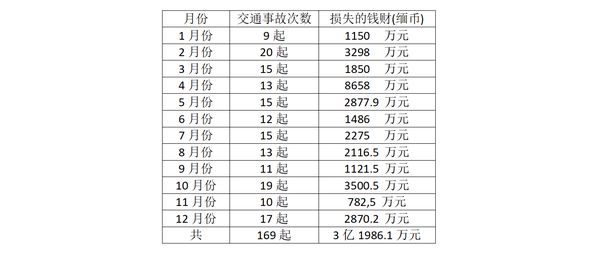 这1年12个月内,每个月发生的交通事故件数及损失的钱财如下: