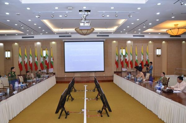 1月25日,和平谈判小组与掸邦重建委员会(RCSS)主席岳西将军率领的代表团在内比都民族团结与和平中心会议厅举行了第二天的和谈。