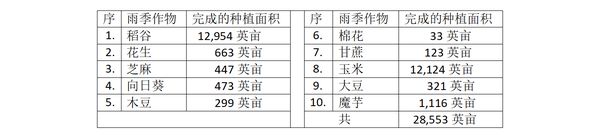 (一)铁定(Tiddim)县区2022年雨季重要的10种雨季作物种植情况