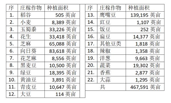 实皆省茵马宾专区在冬夏两季节中种植了各种作物46万多英亩