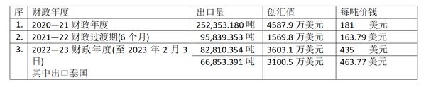 2022—23财政年度缅甸洋葱出口到泰国等7个国家
