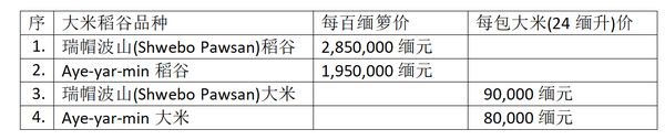 实皆省瑞帽(Shwebo)专区在5月份的第4周期间稻谷/大米价钱稳定。在5月份的第3周该专区向仰光、曼德勒、内比都三大都市及掸邦南部、掸邦北部及帕科库(Pakokku)地区输送出大米83,500包,重量4,175吨。