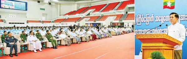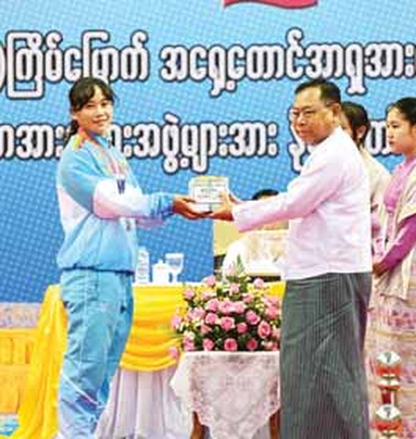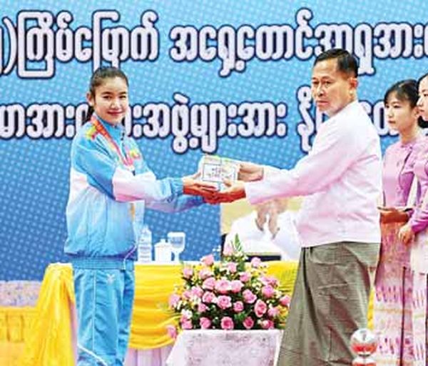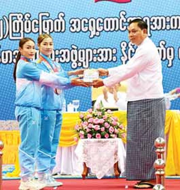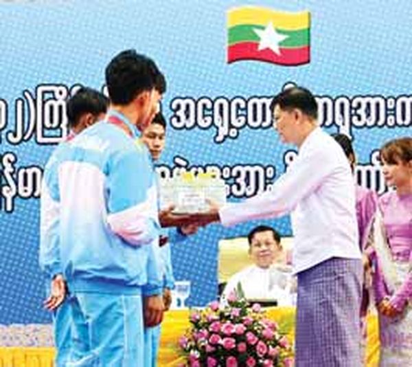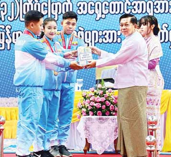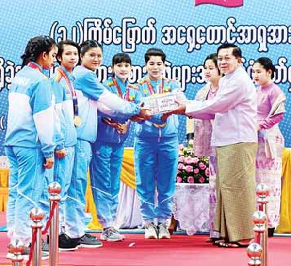 据6月2日出版的《缅甸之光》报报导,为在柬埔寨国家举行的第32届东南亚运动会上取得优异成绩的缅甸运动员们举行的庆功会(颁奖会),于6月1日在内比都Wna Theikdi体育馆内举行,缅甸国家行政管理委员会主席敏昂莱大将出席了此庆功会并向运动员们致辞及颁奖。