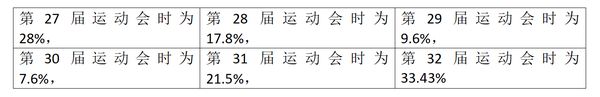 自第27届东运会到这最后的第32届东运会,缅甸运动员们获奖的比例分别为: