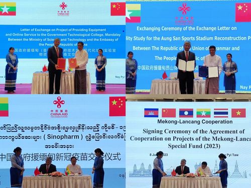 6月8日中缅建交73周年之际,中国驻缅甸大使陈海在内比都出席澜湄合作专项基金2023年缅方项目、中国援缅新一批300万剂新冠疫苗、援缅现代化培训实验室物资项目、援缅昂山体育场重建项目可研等中缅合作文件签署和交换仪式。缅甸外交部、卫生部、科技部、体育与青年事务部等10个联邦部委部长或高级代表出席。