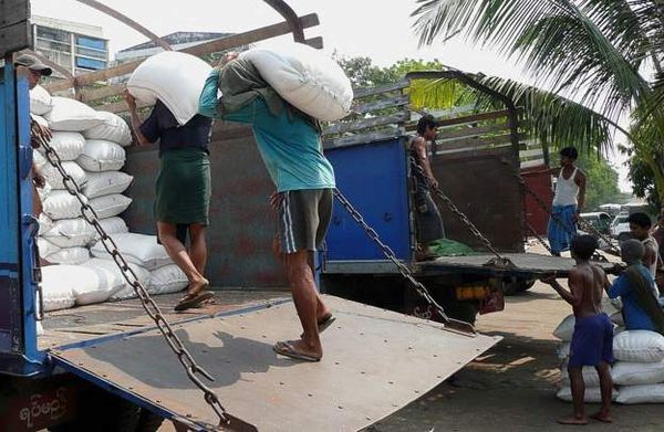 伊洛瓦底省毛淡棉遵县区每天向仰光大都市输送碎米3,700包