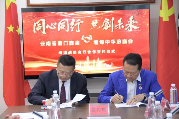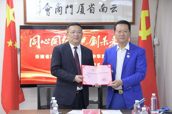 同心同行,共创未来。值此侨连五洲·七彩云南—第19 届东盟华商会在云南昆明隆重举行之际,6月8日下午,缅甸中华总商会林文猛会长一行前往云南省厦门商会交流学习,双方达成共识,签订友好战略合作协议,云南省厦门商会庄哲阳会长并向林文猛会长颁发首届名誉会长聘书。