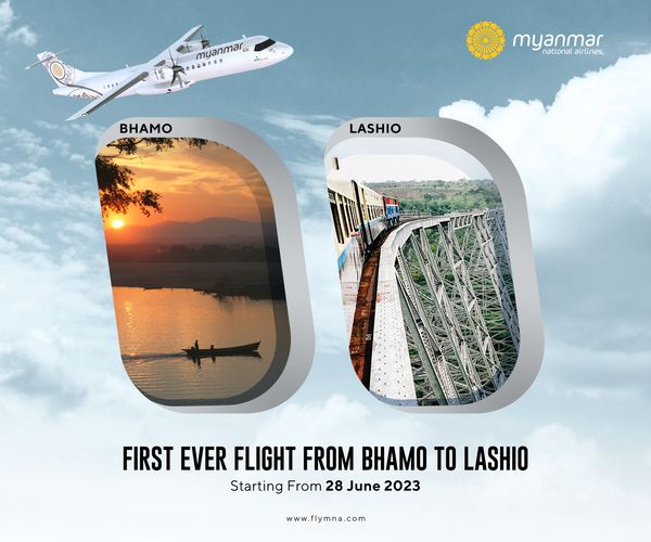 据缅甸国家航空(MNA)发布的消息,首个往返八莫(Bhamo)和腊戍(Lashio)的航班于6月28日开始运营。