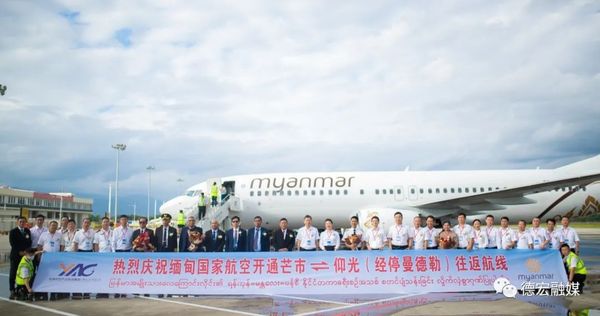 6月29日,首家由国外航空公司——缅甸国家航空公司执飞的中国芒市至缅甸仰光(经停曼德勒)国际航线首航成功。这是德宏州与云南航空产业投资集团贯彻落实加快建设中国面向南亚东南亚辐射中心,推进中缅经济走廊建设的又一重要举措,标志着中缅国际航空服务产业合作迈出新步伐,中缅互联互通开启空中新丝路。