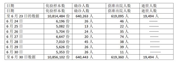 缅甸卫生部2023年6月24日至6月30日每晚8时所公布的疫情情况分别如下: