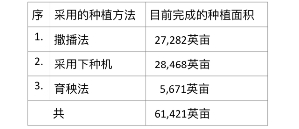 在去年雨作物种植季节时,实皆省那加民族自治区规划种植25,580英亩的雨季稻,在种植季节结束时,实际种植面积为25,219英亩,算是完成了98.59%的种植工作,几乎可以说是近百分之百地完成有关规划种植工作了。