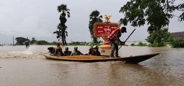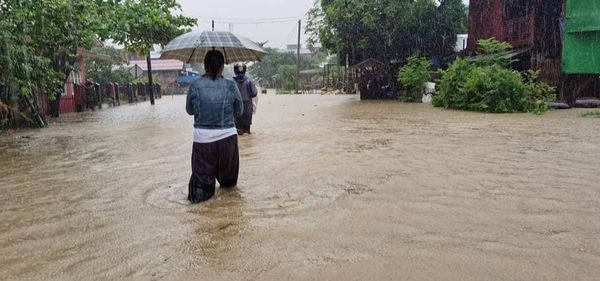 据当地居民表示,由于7月17日夜间的大雨和7月18日凌晨的山洪水,导致孟邦耶城韩甘村低洼处小区发生水灾。