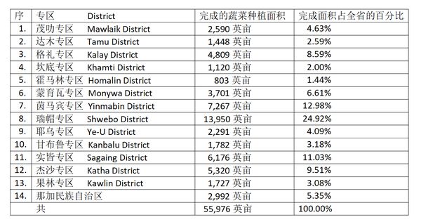 实皆省方面规划今年雨作物种植季节期间种植各种蔬菜138,100英亩,直到7月份第二周时已完成了各种蔬菜约56,000英亩的种植工作。