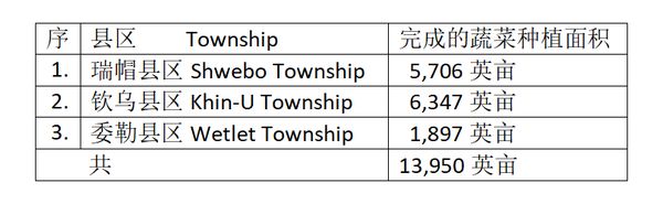 “瑞帽专区在每年的雨作物种植季节期间都会种植2万多英亩的各种蔬菜作物。本财政年度内同样规划种植蔬菜,现在已完成了所规划种植面积的50%以上了。生产 出来的蔬菜产品除供本地区消费外,富余的产品也会输送往省内其他专区、县区出售。”实皆省省农业局的一位负责人这样介绍道。