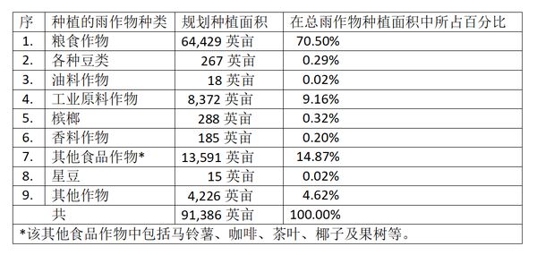 今年雨作物种植季节期间霍马林县区规划种植的各雨作物种植面积如下: