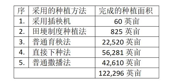 彪县区目前完成的雨季稻种植情况: