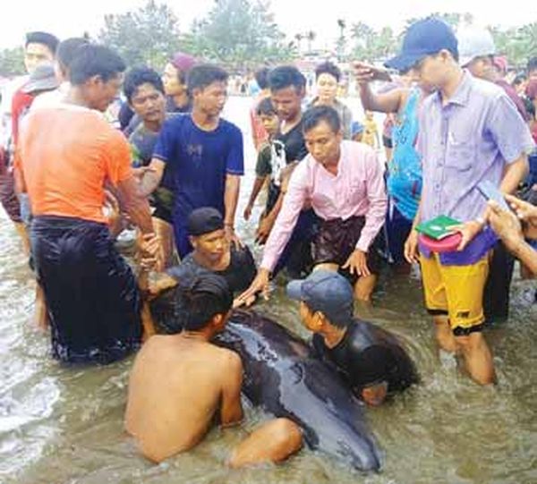 伊洛瓦底省昌达(Chaung-tha)海滩地区在8月20日下午5时时,发现一条大鲸鱼搁浅,已将之援救重新放生回大海。