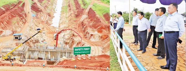 接着联邦部长一行人来到雅绍县区景坎(Keng-kham)村附近的综合水利工程的工地,景坎村附近的Nan-act溪上正在兴建一座水坝,这是一综合水利工程。工地的负责人向联邦部长及首席部长介绍了有关工地的建设情况。