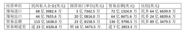 比较一下,可发现民间私人企业,不论在出口还是进口方面,都远多于国营部门单位。但比较贸易顺逆差情况时,由于国营部门进口远少于出口,所以呈现贸易顺差情况,而民间私人企业却呈现出贸易逆差情况。