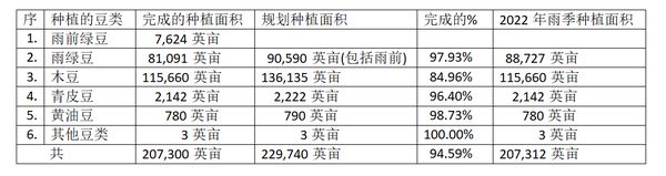 甘布鲁县区今年雨季所完成的豆类种植面积、规划种植面积及2022年度雨季各种豆类的种植面积如下表: