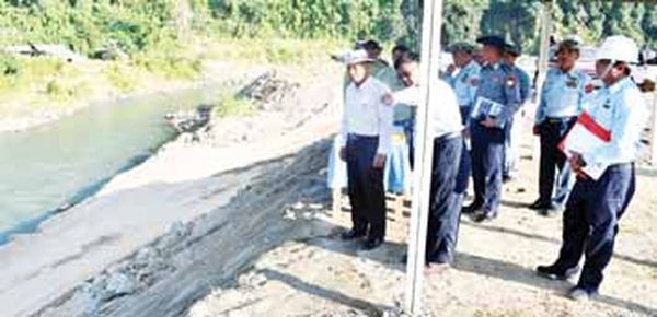实皆省首席部长U Myat Kyaw一行人,于10月20日前往视察位于霍马林县区Nan-ta-kyaik村附近南巴额溪上的南巴额小水电厂的建设工程。水电局第二建设小组的负责工程师向首席部长介绍了该小水电厂兴建的情况。