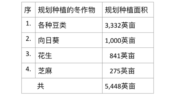 2023年冬作物种植季节期间榜县区规划种植的各种冬作物: