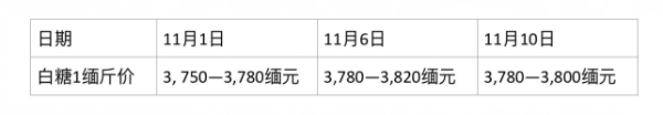 这期间缅甸国内白糖价钱也在波动之中,这一时期白糖1缅斤(约等于1.6公斤)价钱变化情况如下:
