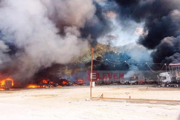 金三角口岸燃起大火 损失高达85辆货车