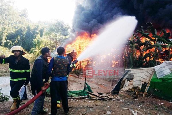 11月23日上午8时30分左右,掸邦北部木姐市金三角口岸附近7华清货物运输站发生炮弹爆炸,致85辆货车着火,直至下午5时30分左右才被扑灭。