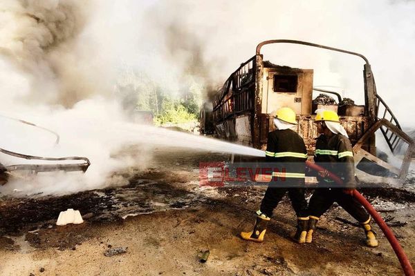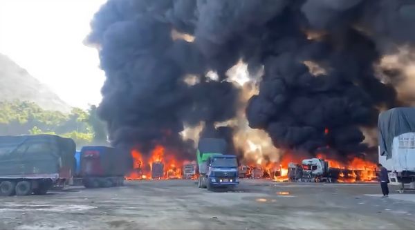 据悉,被烧毁的货车和货物每辆车价值在3亿至5亿缅币之间。