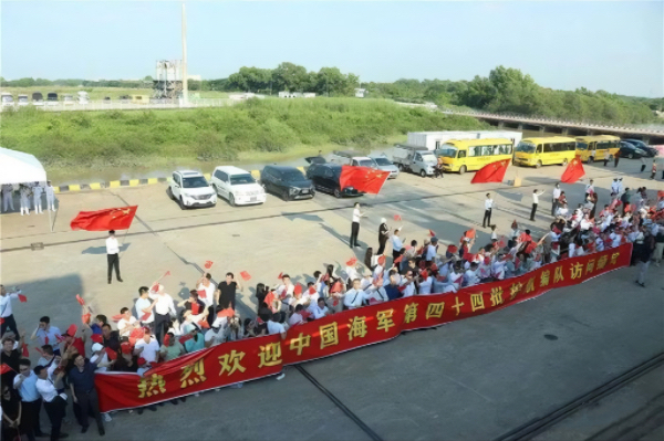 缅甸海军高级官员、中缅友好协会、和中国驻缅大使馆和武官热情迎接了抵达仰光进行友好访问的中国军舰。 佐敏吞少将表示:“正如我前日表达,缅甸和中国是战略伙伴和有着胞波情谊的国家,两国政府和两军之间遵守着和平共处的五项原则,并且有着深厚的友谊。”