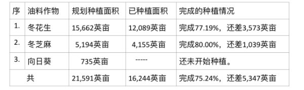 瑞同县区方面,在今年的冬作物种植季节期间,规划种植各种油料作物21,591英亩,到目前为止完成了这些油料作物16,244英亩的种植工作,完成了规划种植面积的75.24%。