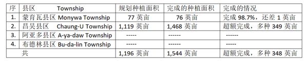 今年雨季蒙育瓦专区内的各县区青辣椒规划种植面积及完成的种植面积如下表: