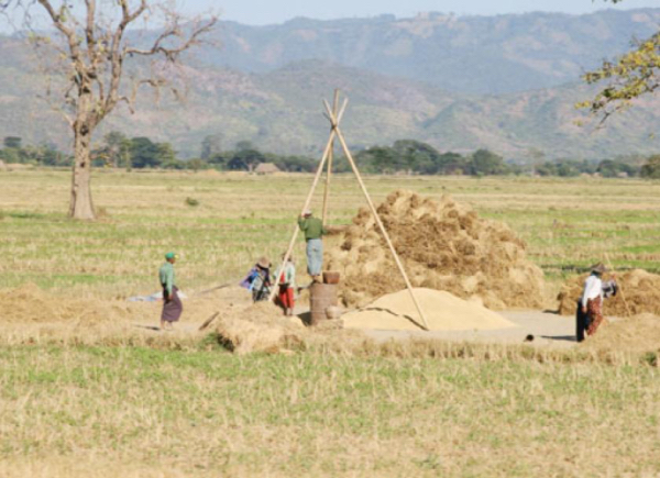 “本漂县区由于有充足的农业用水,所以稻谷种植工作都能够顺利进行并获得好收成。现在收割好的稻田每英亩产量达到90.22缅箩。对当地农夫们进行的收割扬场工作,农业局职工们也向他们宣导收割后的技术工作,尽量减少收割时人为的损失。”本漂县农业局负责人Daw Moe Moe Wai这样介绍道。