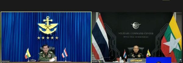 12月12日,国家管理委员会主席敏昂莱大将和泰国皇家陆军总司令 Songwit Noonpackdee 将军举行了线上视频会议。