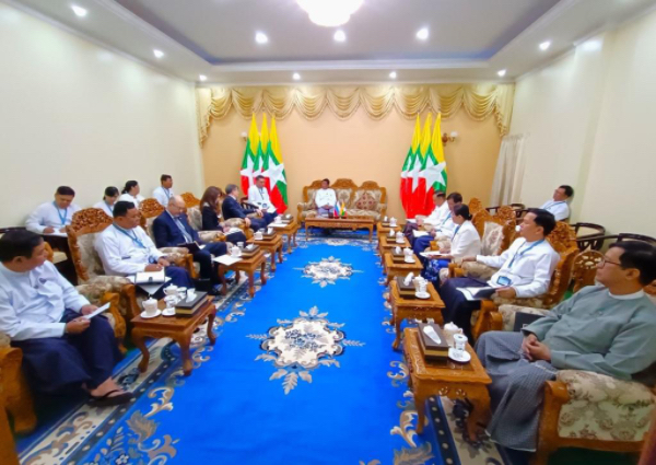 1月18日上午,联邦农业、畜牧和灌溉部部长吴敏瑙(ဦးမင်းနောင်)与俄罗斯驻缅甸大Iskander Azizov 在该部会面。