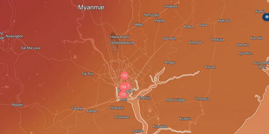 发布全球空气质量测量数据的 IQAir 数据显示,仰光的空气污染已达到红色级别,可能影响每个人的健康。