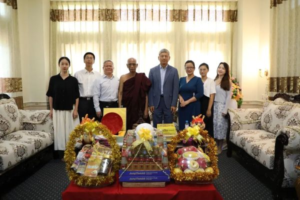 3月26日,陈海大使在仰光拜会缅甸国家僧伽委员会新任主席敏姜大师,缅甸佛教弘法大学副校长盛莫、使馆潘峰参赞等参加活动。……