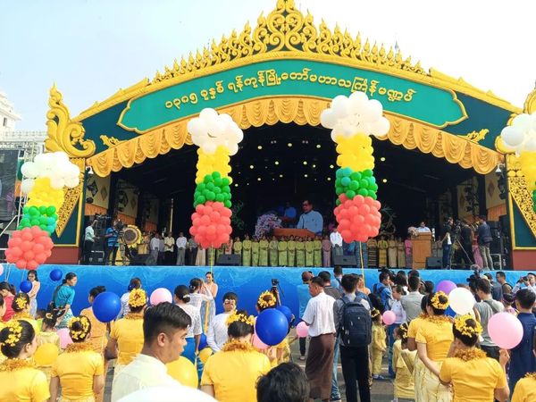 实皆地区传统的缅甸泼水节于4月13日上午在蒙育瓦镇开幕